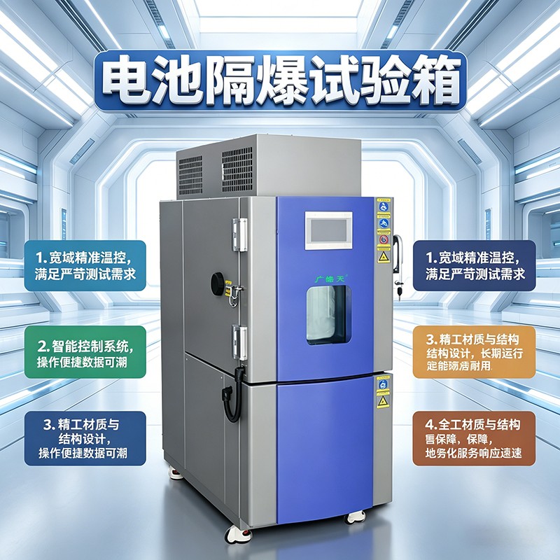 总结:本设备集快速温变环境模拟与专业防爆安全于一体,既满足-40℃~150℃高精度温度测试需求,又为电池等危险品测试提供链条、泄压、喷淋、灭火、排烟等全面防护,是新能源行业安全测试的理想选择。